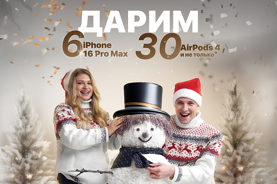 В этом году у нас особенно много подарков: 6 iPhone 16 Pro Max, 30 наушников, AirPods 4 и множество других полезных товаров*