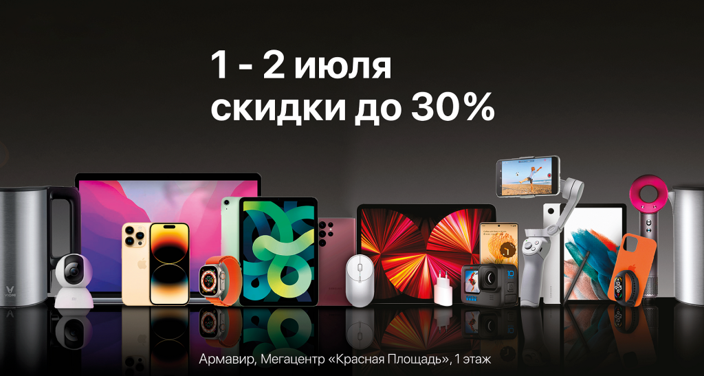 1 и 2 июля вы сможете купить гаджеты со скидкой 15% и аксессуары для них с выгодой 30%.